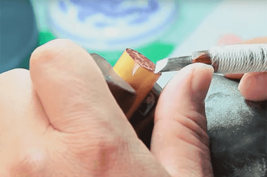 面 訂 - 肉眼では確認できない印面のガタつきを、トクサで擦って平らに修正します。